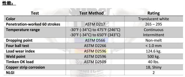 Super-Lube舒泊润高温极压润滑脂含PTFE 技 术 数 据 表